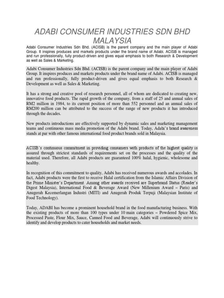 Manufacturers spices seasoning. Adabi consumer industries sdn bhd. Acisb is a premier producer of consumer goods for the malaysian market and abroad. 2020 adabi consumer industries sdn bhd 116069 m.