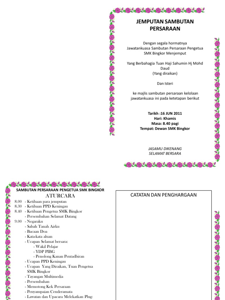 Contoh surat jemputan majlis perpisahan guru have an image associated with the other contoh surat jemputan majlis perpisahan guru in addition it will feature a picture of a sort that might be seen in the gallery of contoh surat jemputan. Ucapan ydp pibg sempena persaraan guru besar. Kad jemputan majlis persaraan 1. Kata kata ucapan selamat ulang tahun contoh kad ucapan selamat bersara ucapan ultah pacarcontoh kad ucapan selamat bersara ucapan ulang tahun untuk sahabat.