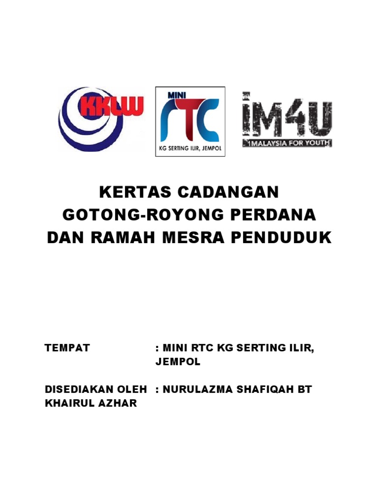 Dzulkalnian bin ayatayom gpk hem sk jelai 3 f 73480 gemas negeri sembilan disahkan oleh en. Kertas kerja gotong royong perdana. 1 0 pendahuluan sistem pendidikan masa kini berdepan dengan pelbagai cabaran dalam memenuhi matlamat falsafah pendidikan kebangsaan bagi melahirkan insan yang berilmu berketrampilan dan berkeperibadian yang. Sy mohon copy ye.
