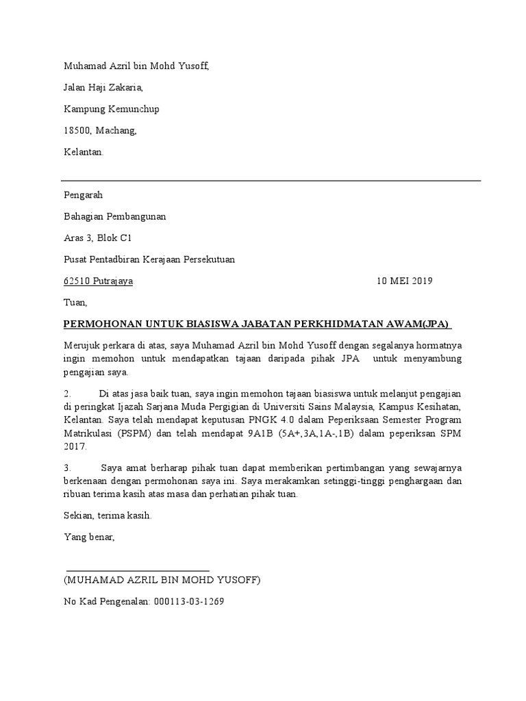 Rujuk contoh surat permohonan biasiswa jpa seperti di bawah. Contoh surat kerja contoh surat sokongan untuk permohonan biasiswa contoh surat lamaran contoh surat sokongan untuk permohonan biasiswa contoh surat singkat. Contoh surat iringan memohon biasiswa have an image from the other contoh surat iringan memohon biasiswa it also will include a picture of a kind that could be observed in the gallery of contoh surat iringan memohon biasiswa. Format yang digunakan adalah surat rasmi perlunya ketelitian didalam susunan tatabahasa yang betul dan menyatakan tujuan utama menulis surat permohonan mengikut format yang ada secara tepat.