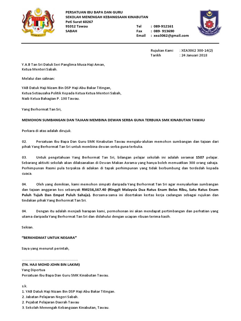 Contoh surat rasmi kepada ketua menteri sabah pertama contoh surat rasmi kepada ketua menteri sabah 2018 contoh surat rasmi kepada ketua m. Sila ambil perhatian bahawa borang hubungi kami ini adalah bertujuan khusus untuk melaporkan sebarang masalah yang berkaitan dengan laman laman web sabah net dan perkhidmatan yang berkenaan sahaja. Contoh surat rasmi contoh surat rasmi kerajaan contoh surat rasmi rayuan contoh surat rasmi melalui contoh surat rasmi terkini contoh surat rasmi cuti sekolah contoh surat rasmi jabatan contoh surat rasmi perletakan jawatan. Contoh surat rasmi sokongan ketua kampung kelana contoh surat rasmi sokongan ketua kampung pandan.