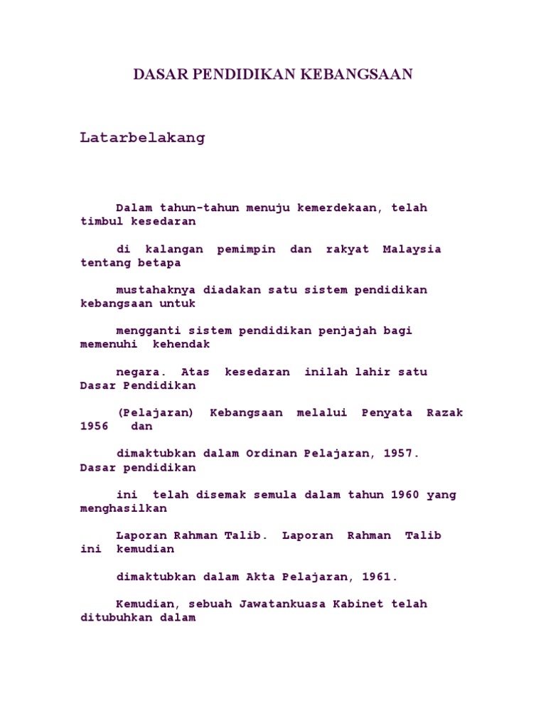 Dasar Pendidikan Kebangsaan Pdf