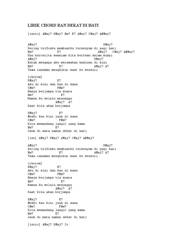 Chords for ran dekat di hati. Dekat di hati by ran. Mereka juga sering berkolaborasi dengan penyanyi lain. Dekat di hati chords by ran.