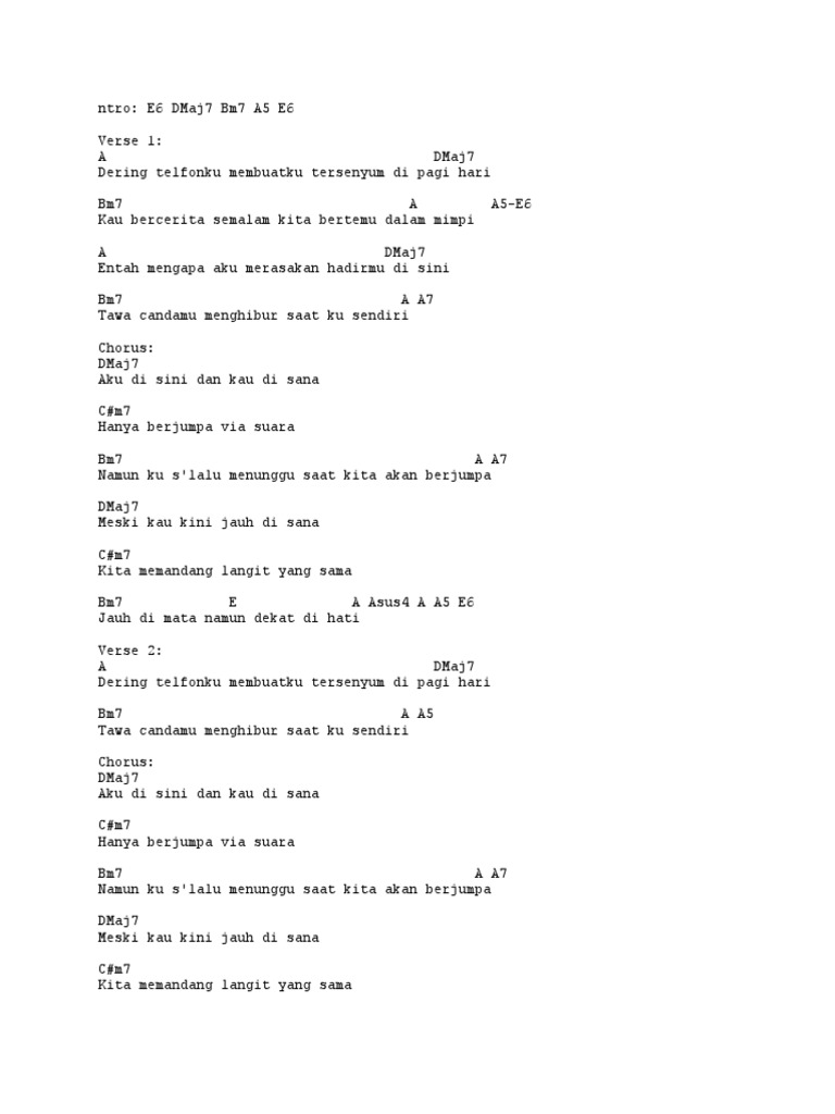 Last edit on jan 09 2015. G c am d g g c dering telfonku membuatku tersenyum di pagi hari am d g kau bercerita semalam kita bertemu dalam mimpi g c entah mengapa aku merasakan hadirmu di. C f dm g c g c dering telfonku membuatku f tersenyum di pagi hari dm g kau bercerita semalam c g kita bertemu dalam mimpi c entah mengapa aku f merasakan hadirmu di sini dm g tawa candamu menghibur c c7 saat ku sendiri. Dekat di hati ran.