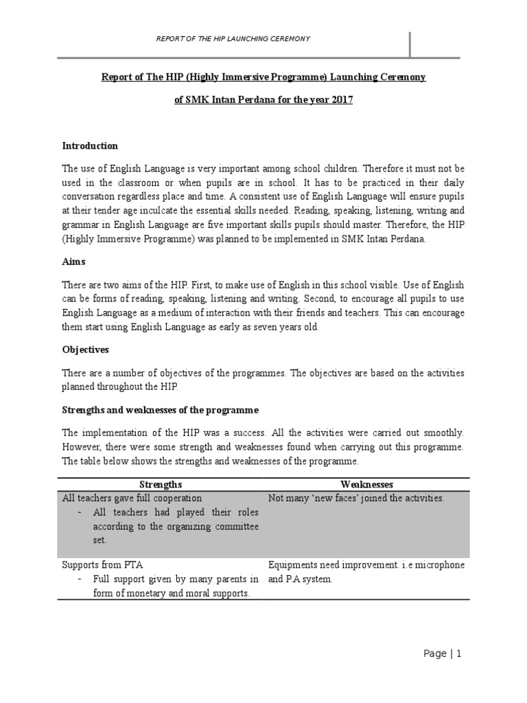 It also aims to inculcate positive behaviours towards the learning and usage of the english language. Teks pengerusi majlis english version 7. Pelaksanaan program highly immersive programme hip activities ministry of education introduced a new program to enhance english usage among teachers and pupils. Kertas kerja pelaksanaan hip 3.