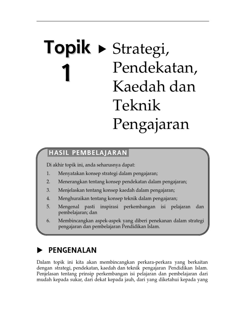 Secara asas seorang guru mengetahui ciri pengajaran dan pembelajaran pendidikan islam yang baik kerana rata rata guru memiliki sekurang kurangnya diploma pendidikan dan perguruan ishak 1995. Pendahuluan 2 minit memberi salam dan membaca doa sebelum belajar. 1 guru memberi salam kepada murid. Isbn 978 967 942 911 4 kulit lembut.