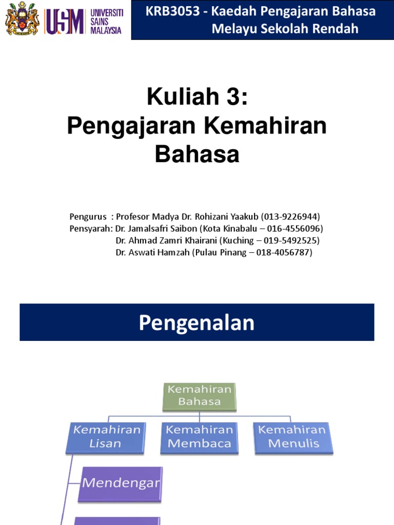 Kemahiran berbahasa meliputi kemahiran mendengar bertutur membaca dan menulis kemahiran berbahasa ini merupakan teras kepada penguasaan bahasa baku penguasaan kesemua kemahiran ini amat penting dalam proses pengajaran dan pembelajaran supaya berjalan dengan lancar dan berkesan kemahiran bahasa yang berhubung dengan kemahiran lisan melibatkan dua komponen asas iaitu mendengar dan bertutur. Kajian ini membandingkan strategi pembelajaran bahasa spb yang digunakan oleh pelajar cemerlang dan pelajar lemah untuk menguasai kemahiran membaca bahasa melayu bm di dalam kelas. Bahasa dalam pembelajaran bahasa 51 2 2 t ata tingkat kata dan ayat bahasa malaysia 55 2 3. Kemahiran bertutur ialah kemahiran menyebut dan menyembunyikan bunyi bunyi bahasa dengan pengujaran kata kata atau ayat dalam intonasi nada tekanan suara jeda serta helaan yang betul noor aida dani 2007.