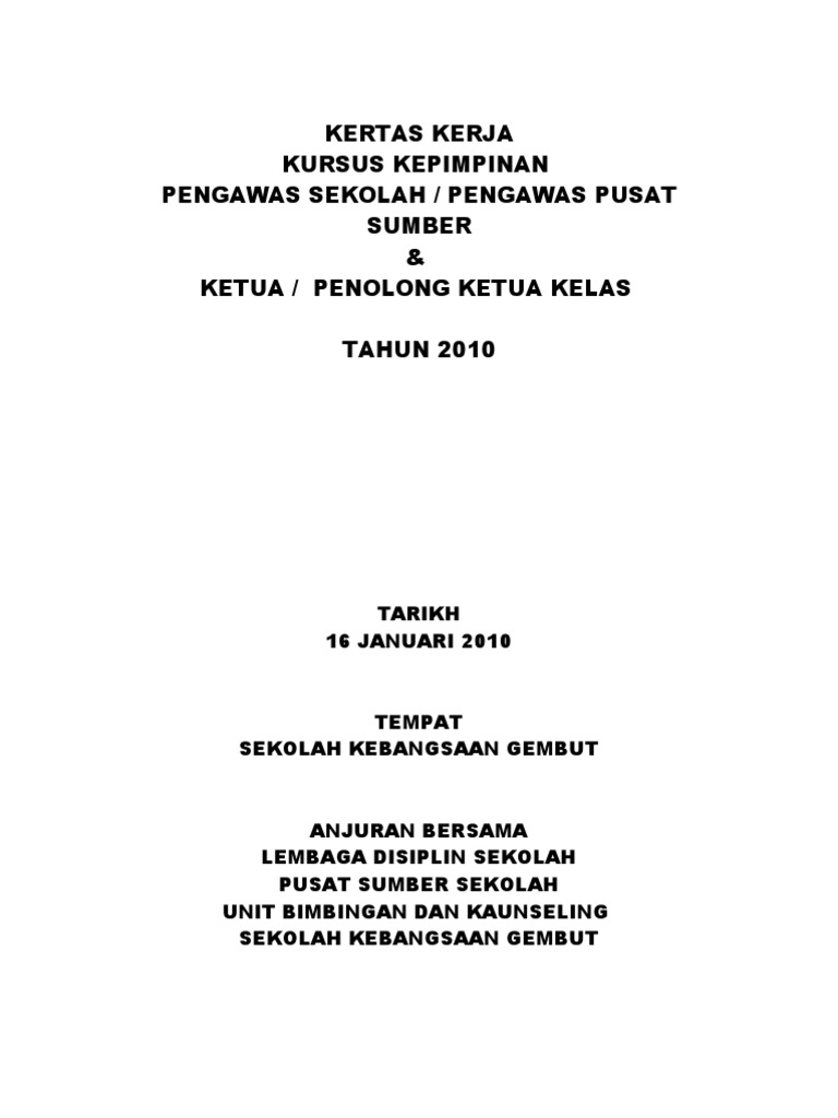 Jawatankuasa kerja kem kepimpinan pengawassekolah pss prs dan spbt 2014. The file extension pdf and ranks to the documents category. Lawatan sambil belajar ke kelantan 3. Kertas kerja kursus kepimpinan pengawas pss.
