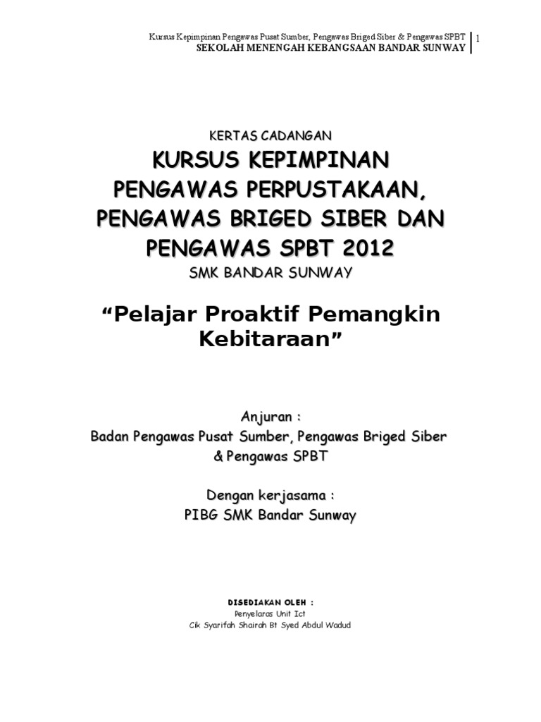Kertas kerja kem kepimpinan pengawas. Papan kenyataan bilik media 2013 sebelum pengawas pusat sumber mengemas kini. Use the download button below or simple online reader. Bengkel penyediaan pamplet bilik bilik khas 4.