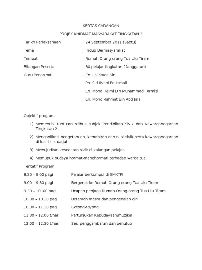 Exco skop tugasan 3 setiusaha menyediakan kertas kerja bagi program khidmat masyarakat yang akan dijalankan. Khidmat pendidikan dan kesihatan orang asli hulu kuang selangor tempat. Program khidmat masyarakat 1. Documents tips contoh lampiran folio sivik tingkatan 1 review ebooks source.