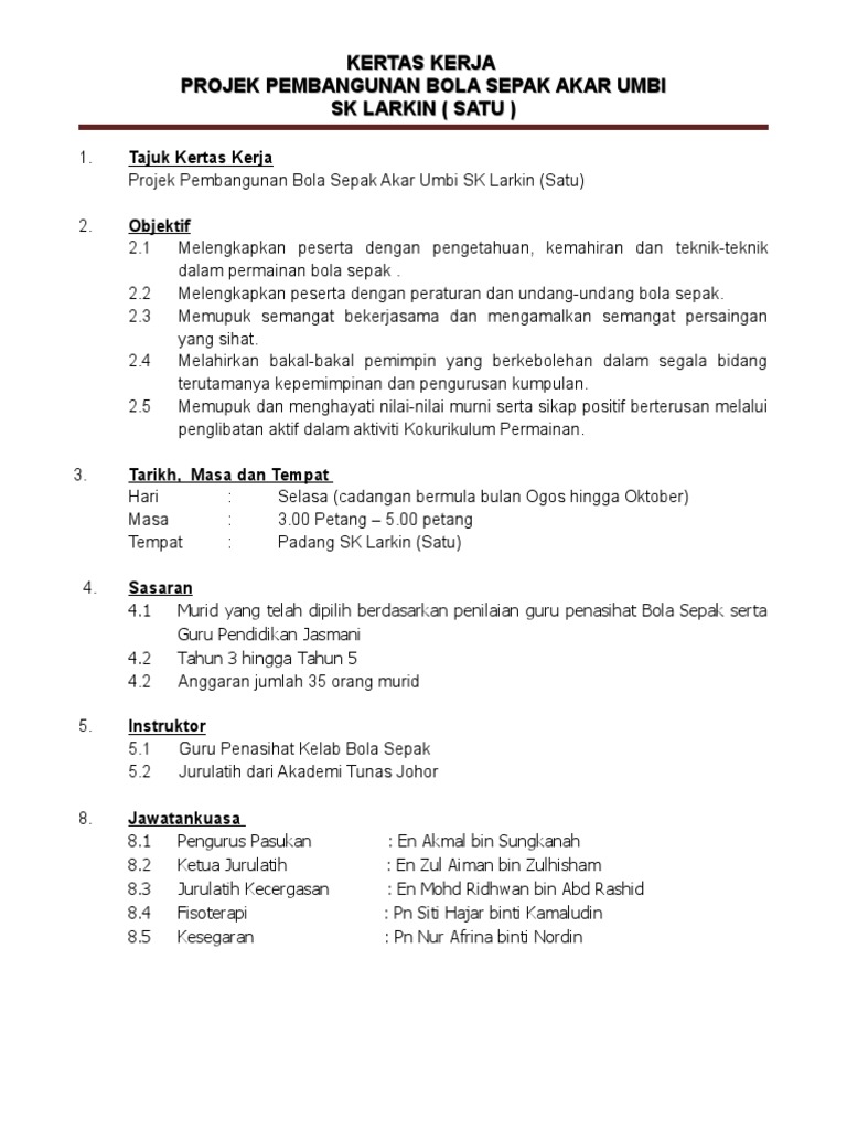 Bole saya dapatkan kertas kerja pembangunan bola sepak ni untuk pembangunan di tempat saya. Kertas kerja pertandingan bola sepak bawah 12 tahun zon kedup anjuran sekolah kebangsaan sumpas 2013 01. Anonymous february 17 2014 at 11 03 pm. Keadaan ini juga dapat kita lihat turut menular dikalangan pelajar sekolah sekolah rendah.
