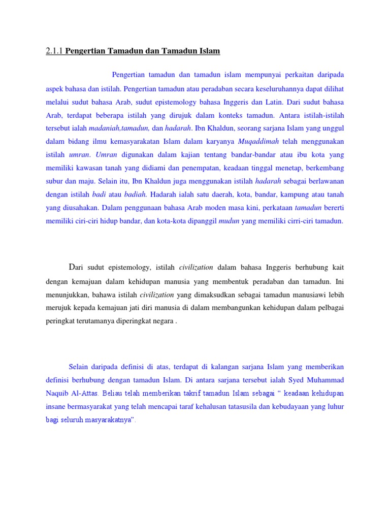 Konsep tamadun islam menurut profesor syed naquib al attas tamadun islam membawa satu takrif keadaan kehidupan insan bermasyarakat yang telah mencapai taraf kehalusan tatasusi la dan kebudayaan yang luhur bagi seluruh masyarakat 1. Bahasa melayu tamadun tahap pemikiran yangtinggi dengantaraf budaya tahap pemikiranyang halus peradaban tingkat kemajuan dalam kehidupan jasmani dan rohani syed muhammad naquib al attas mencapaitahap kehalusan tatasusila kebudayaanyang luhur ketinggian peribadi budi pekerti. Syed muhammad al naquib bin ali al attas arabic. Malah istilah tamadun sendiri berasal dari istilah din yang bermaksud satu cara hidup atau kehidupan beragama.