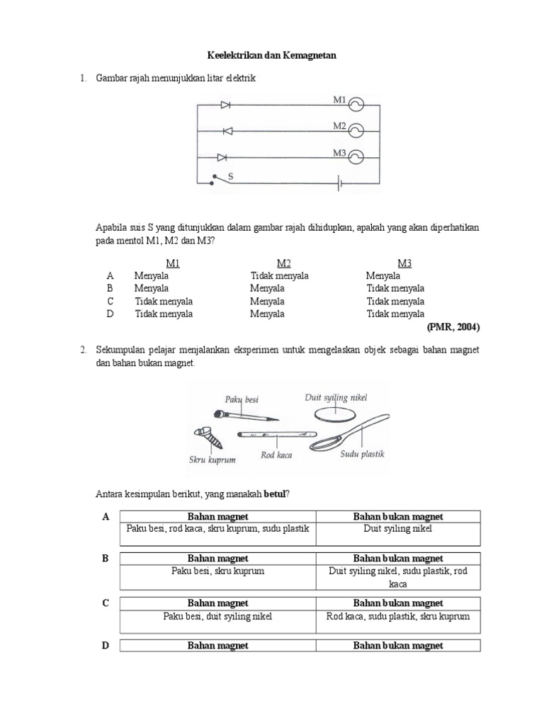 Latihan keelektrikan dan kemagnetan tingkatan 2. Sains tingkatan 2 cikgu raimi bin rahim smk durian tunggal melaka. Bab 2 ekosistem bab 3 nutrisi bab 4 kesihatan manusia bab 5 air dan larutan bab 6 asid dan alkali bab 7 keelektrikan dan kemagnetan bab 8 daya dan gerakan bab 9 haba bab 10 gelombang bunyi bab 11 bintang dan galaksi dalam alam semesta bab 12 sistem suria bab 13 meteroid asteroid komet. Digunakan dalam radio telefon dan komputer perintang boleh ubah rintangan yang boleh diubah. Jenis kutub elektromagnet bergantung kepada arah arus elektrik yang mengalir melaluinya.
