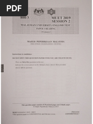Muet reading paper 2019 session 1 session 2 session past year muet listening paper. 3 parts would have been enough to gauge the level but i suppose they wanted equal weighting in terms of marks and time 25 overall compared to the previous 15 so time increased from 30 mins to 50 mins. Madam audrey is a form 6 academic teacher muet coordinator at smk majakir papar. I am not going to tell my whole experience of taking muet exam but i am writing this to share with you the actual muet session 2 2019 papers which include writing and reading papers.
