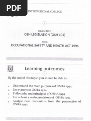 Osha 1994 section 15 sate group nik nurul fathihah. Section 15 occupational safety and health act 1994 kicks of part iv of the act with the following provisions. While the act is an umbrella act to protect the safety and health of all persons at work and. 24 february 1994 date of coming into operation.