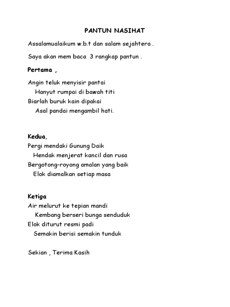Pantun tentang cinta sejati kumpulan berbalas nasihat pantun lawak source. Haruslah taat kepada ibu bapak sehat akalnya selamat badan. Anak ikan di dalam balang tidak banyak berenang sendiri. Pantun sopan santun kepada ibu dan bapak lebat buahnya pohon kelapa.