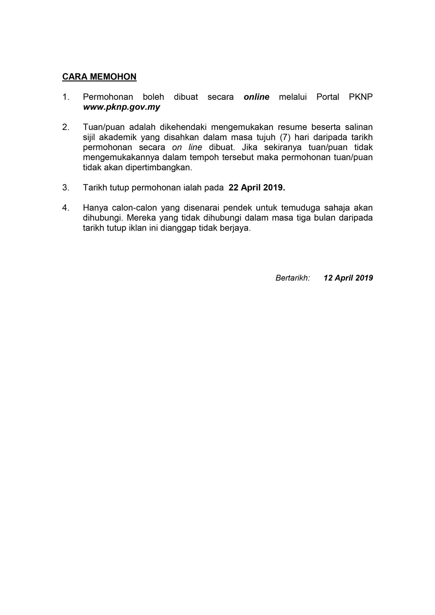 Adalah satu platform pengiklanan jawatan kosong yang terkini diseluruh malaysia dalam sektor kerajaan mahupun swasta setiap jawatan yang diiklankan adalah berpandukan jabatan majikan sila rujuk iklan dibawah dan ikuti langkah langkah untuk memohon jawatan.