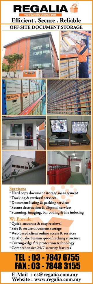 Same day or next day retrieval of documents. Regalia is the largest locally owned records management company in malaysia. We offer comprehensive and cost effective records management solutions along with our expertise and experience to address the complex business challenges face by our valued customers. We offer comprehensive and cost effective records management solutions along with our expertise and experience to address the complex business challenges faced by our valued customers.