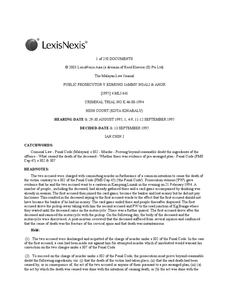 The use of section 302 of the penal code for fatal drink driving cases is appropriate although it requires a higher level of evidence said a law expert. The sole jurisdiction of parliament of malaysia is established over criminal law in malaysia. The penal code malay. Sadly a trial by combat isn t an option yet in malaysia.