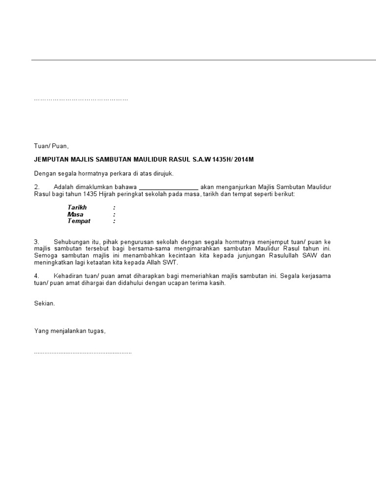 Surat jemputan majlis sambutan maulidur rasul. Tuan puan jemputan majlis sambutan maulidur rasul s a. Teks pengacara majlis sambutan maulidur rasul peringkat smk demak baru 2015 tarikh. Majlis maulidur rasul 1433 h di bawah tema wassatiah tonggak kesatuan ummah diteruskan lagi dengan mendengan ceramah daripada penceramah jemputan kita. Jemputan ke majlis kesyukuran dan ceramah sempena sambutan maulidur rasul peringkat universiti malaysia sabah ums tahun 2016m 1438h.