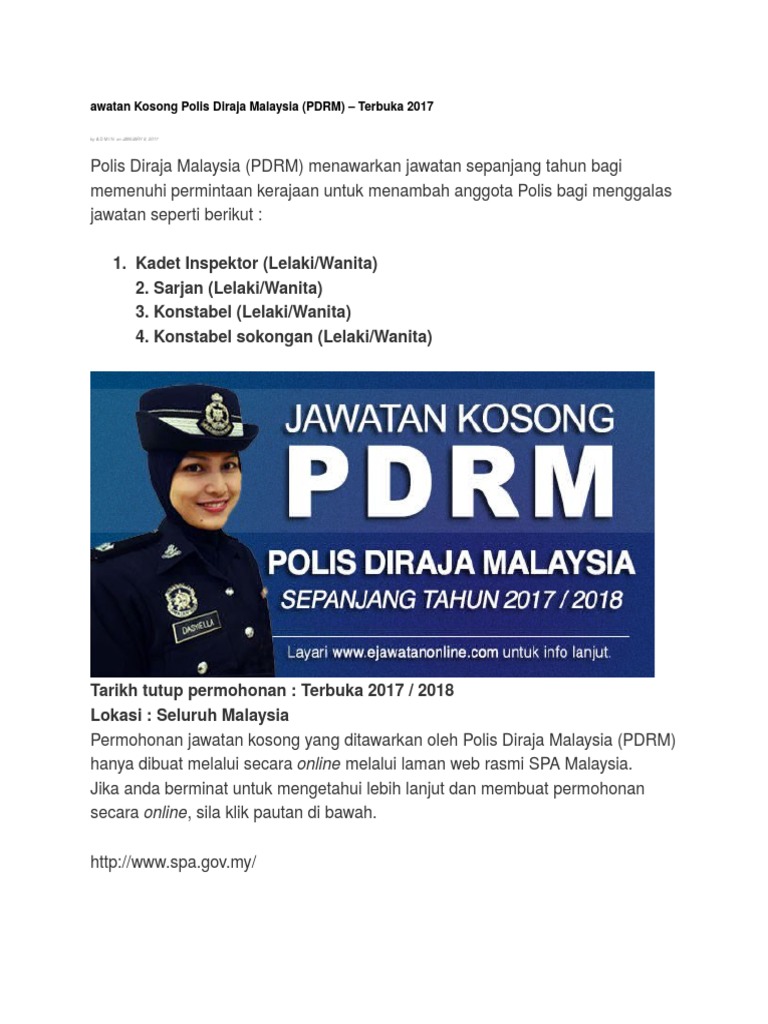 Temuduga terbuka polis 2017 memang banyak yang mencari. Rm1300 pusat jobsmalaysia kelana jaya. Tak hanya tarikh temuduga polis bantuan bulan november sesi 2017 disini juga ada berbagai macam kerja kosong. Permohonan jawatan kosong yang ditawarkan oleh polis diraja malaysia pdrm hanya dibuat melalui secara online melalui laman web rasmi spa malaysia.
