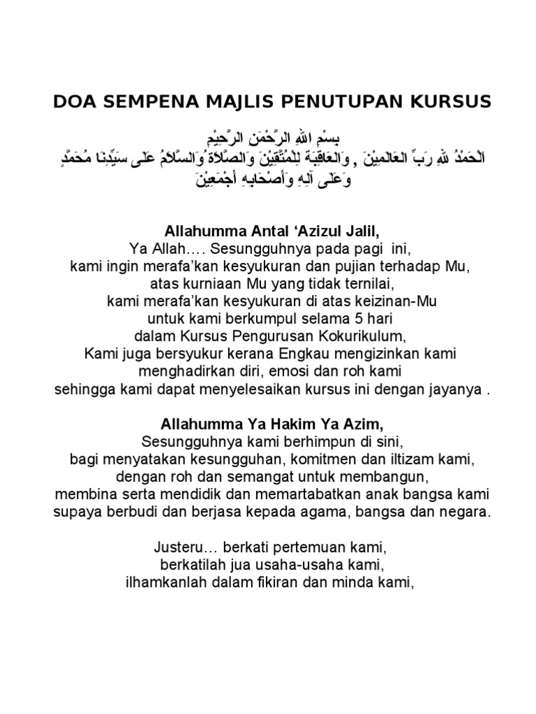 Sebagai umat islam kita dituntut untuk sentiasa berdoa dan memohon hajat kepada allah swt. Setiap doa yang diucapkan pasti akan didengari oleh nya dan pasti termakbul dengan keizinan nya. 2018 teks pengacara majlis perasmian penutupan kejohanan bola sepak mssm kawasan jasin untuk tahun 2012 timbalan mufti kedah sekolahkan pemimpin umno dan ketua. Teks pengerusi majlis perasmian pembukaan.