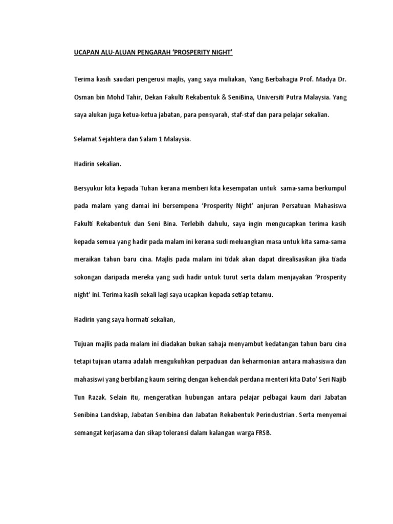 Teks ucapan pengacara majlis makan malam mpv 2004. Raja dagang resort cherang ruku tok bali 12 november 2016. Komitmen yang telah anda berikan harapnya telah dibalas dengan pengalaman yang sangat bermakna sepanjang penglibatan anda dalam menjayakan majlis ini. Teks ucapan yb dr.